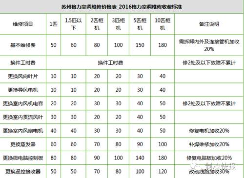 苏州格力空调维修价格表_2016格力空调维修收费标准