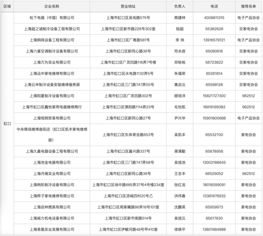 PS.各区509家正规家电维修服务企业名单,市民可以通过962512上海家电维修服务热线、12345市民热线、12315消费者权益热线、市商务委网站等相关信息渠道进行查询。