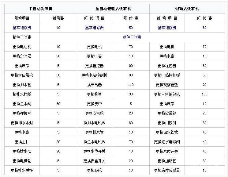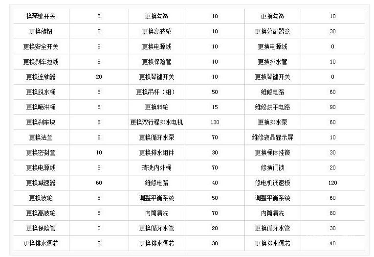 洗衣机维修费用标准 :