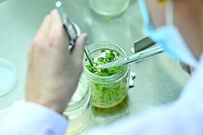 工作人员在宁夏西吉县恒丰马铃薯种薯脱毒繁育中心进行马铃薯脱毒苗切段繁育。新华社发