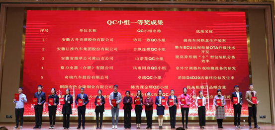古井集团共获13个大赛奖项,其中安徽龙瑞玻璃有限公司热火炫彩QC小组的降低深加工红色产品瓶重喷比例成果、古井贡酒股份有限公司协调一致QC小组的提高车间铁盒生产效率成果、质量创新类“两强一简”的质量管理模式共3个项目获得大赛一等奖;古井贡酒股份有限公司副总经理、总工程师李安军被大赛组委会授予“质量创新卓越领导者”荣誉。