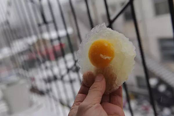 △ 1月22日,山东济南市民将鸡蛋打在铁锅内,然后置于窗台外两小时左右,鸡蛋变成了“冰蛋”。