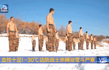 △ 黑龙江黑河, -30℃中边防战士赤膊浴雪斗严寒