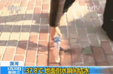 △ 地面倒水瞬间结冰