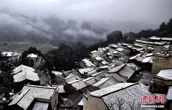 △ 1月21日,“中国最美乡村”江西省婺源县江湾镇篁岭迎来新年第一场降雪。