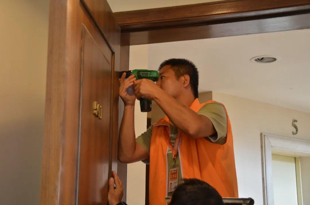 俗话说“术业有专攻”,咱们这么靠谱的活动,服务商肯定也是特别可靠的呀!现场有多乐士、欧派家居、TATA木门、东鹏瓷砖、大自然地板5大知名家居品牌的15位专业维修师傅,给广州5个十年楼龄、两千户以上的成熟大型社区的居民,带来橱柜五金维修、房门合页维修更换、面盆和水龙头维修、木地板维修、墙体墙面检测等20项免费维修保养服务。