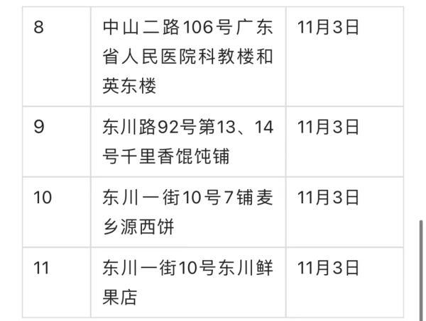因新冠疫情防控需要,请在相关时段到过越秀区下述重点场所的人员,立即向所在社区联系报备,严格落实“3天3检”,并配合做好疫情防控各项措施。若不如实申报,不落实防控措施,造成严重后果的,将承担相应法律责任。