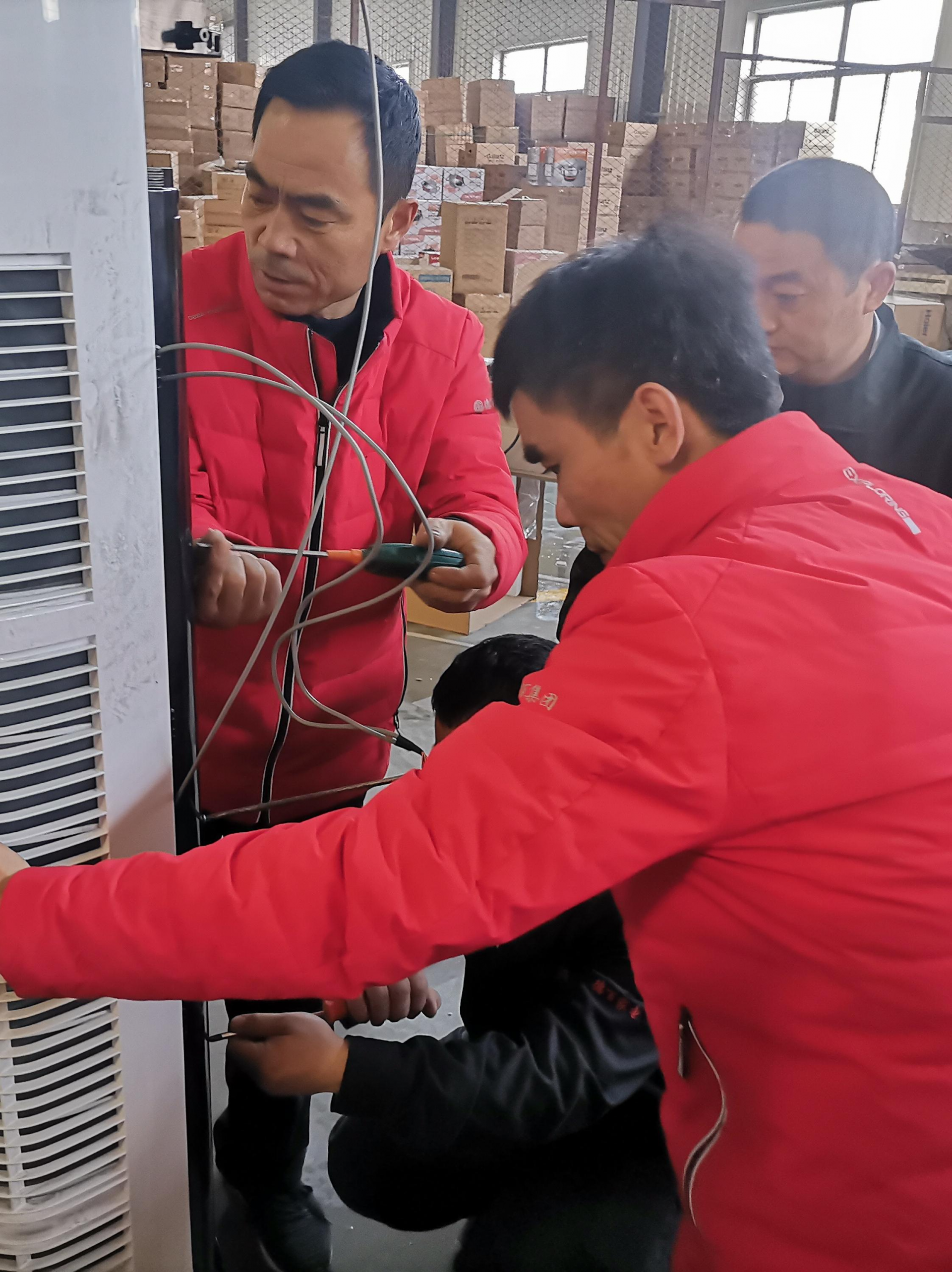 3月13日,德百家电售后服务中心空调安装部经理李长松带领员工赶到临邑方舱医院建设现场后,发现隔离间安装空调与家庭安装有很大不同。