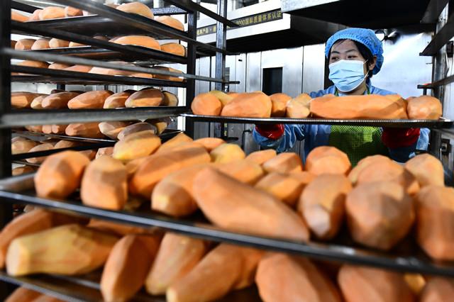 近年来,地处黄河故道的山东省德州市夏津县后赵庄村在乡村振兴的道路上主抓红薯产业,由村党支部领办合作社,进行产业化经营,形成了薯苗培育、种植储存、加工销售、物流运输的产业链条。当地还开发出鲜薯、冰薯、薯干、薯片、芝士蜜薯等系列产品,并通过电商平台向各地销售。如今,小蜜薯已成为当地村民的“致富薯”。新华社记者 郭绪雷摄