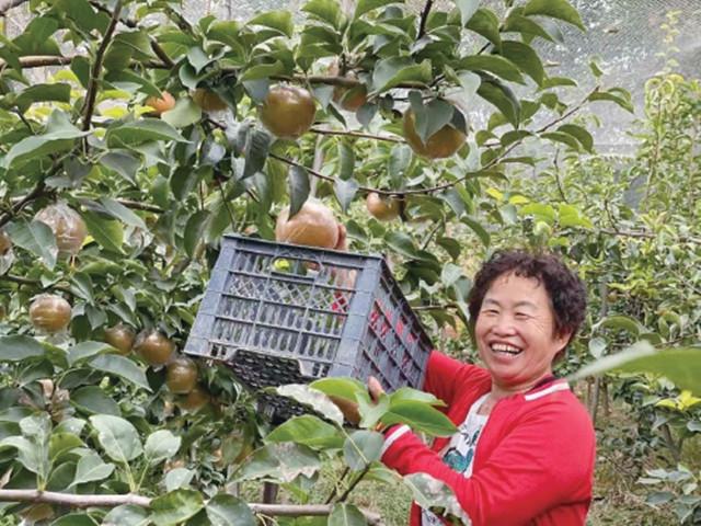 山东省聊城市东昌府区侯营镇多角度多方位探索乡村振兴的路径,积极发挥全省乡村振兴“十百千”工程示范镇的模范带头作用,加快农业结构调整,充分利用高铁旅游、近郊旅游优势,发展“油葵花海”“水果采摘”“月季大道”等乡村旅游精品、特色田园项目,打造集旅游、养生、养老等功能于一体的秀美乡镇。同时围绕梨、油葵、葡萄等发展农副产品精深加工业,延伸农业产业链条,着力培育高端、绿色、优质农产品。图为游客在果园里采摘成熟的水果。张琳摄(农民日报11月7日7版)