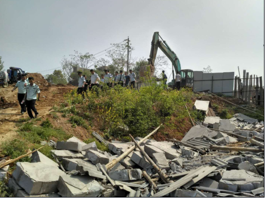 在全市掀起春季拆违风暴的同时,东湖高新区自我加压,在全区开启了“城管再革命”,作为八个专项行动之一的拆违专项行动正如火如荼进行。4月3日上午9点,东湖高新区城管局联合佛祖岭街办事处,对湖口社区、佳源花都等4处违法建设实施强拆。动用执法人员80人,铲车1台,货车2台,氧割机2台,风炮2座。拆除活动板房、钢架铁棚、砖混结构房屋等4处非法建筑物,建筑面积580平方米,极大的消除了该区域因违法建设、乱搭乱盖等因素造成的各种安全隐患。极大的消除了该区域因违法建设、乱搭乱盖等因素给人民群众造成的安全隐患。