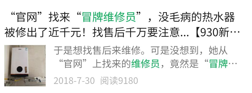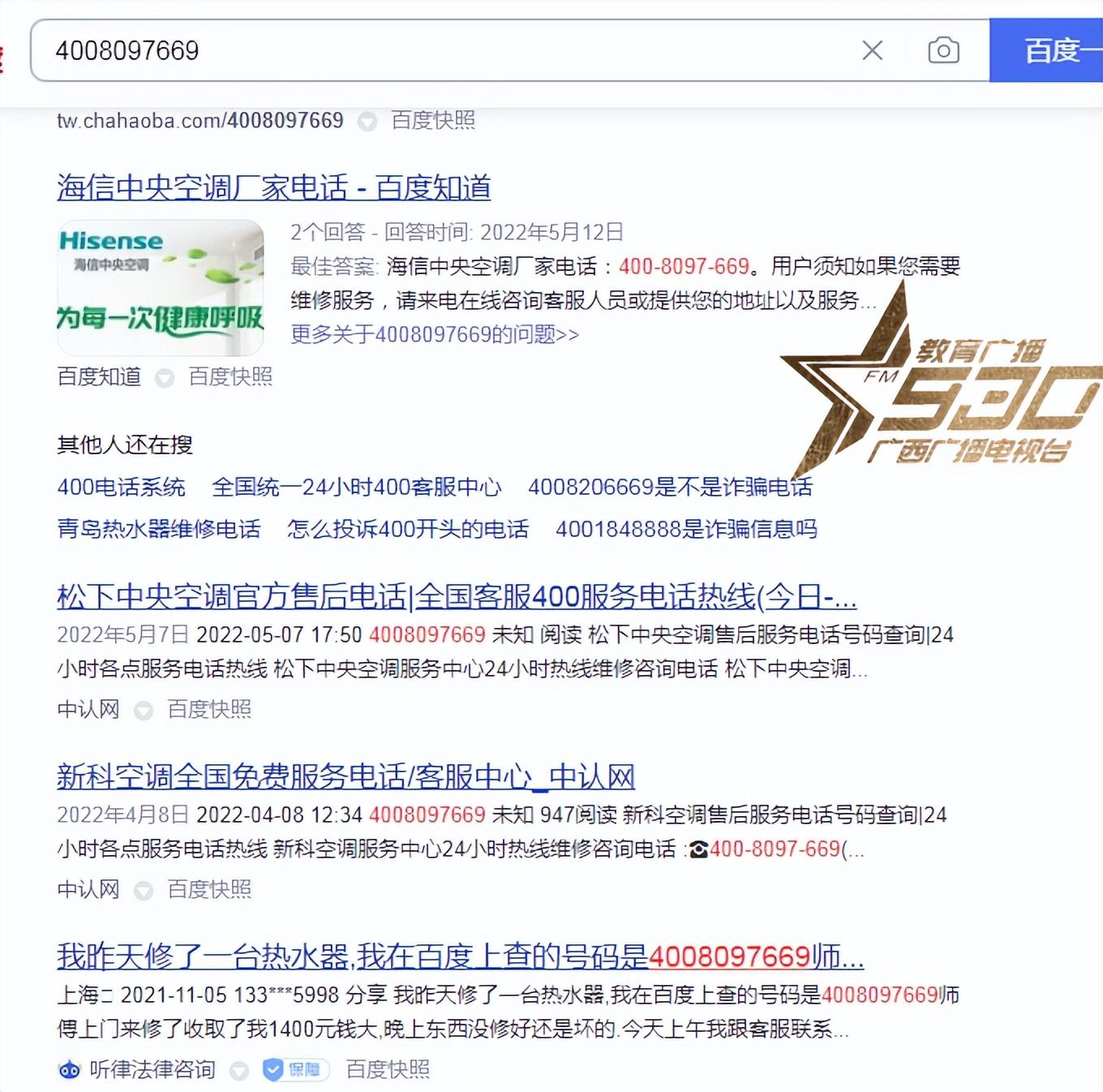 记者也以韦先生搜索到的“400”电话为关键词进行搜索,搜索出来的词条显示,这个电话还是多个知名家电品牌的维修“热线”。但是奇怪的是,这个电话都没有出现在这些家电品牌的官方网站上。所以,是不是真“热线”,相信现在大家心里都有数了。