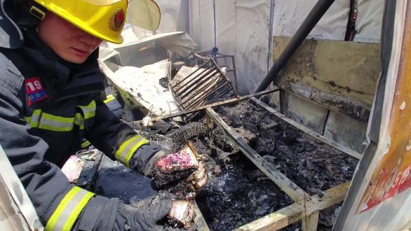 分别对着火部位
