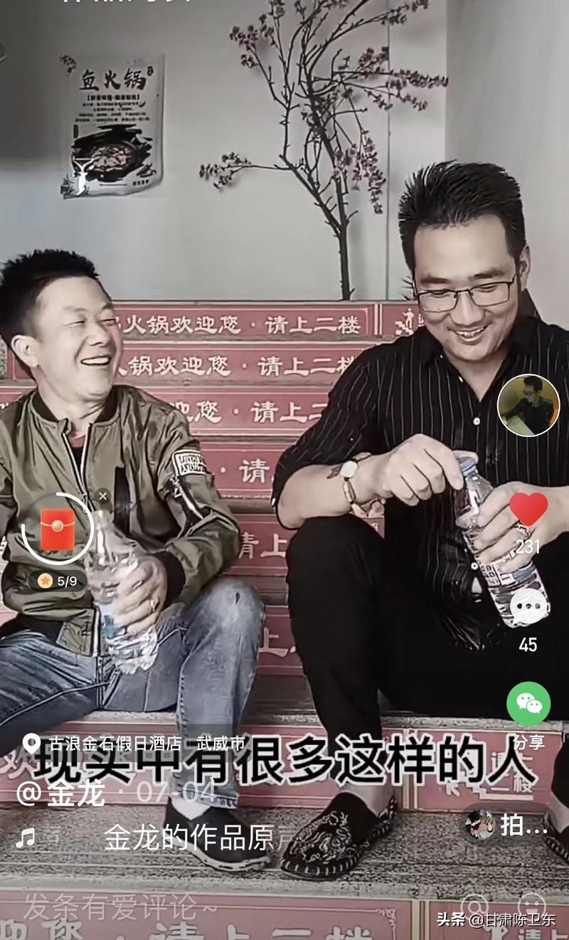 金龙原名黄亮,是一名火锅店的老板,因经营有方,火锅店生意非常红火。一个偶然的机会两人结识,因共同的业余爱好直播,于是两人结为搭档,共同创作古浪方言的搞笑段子,一时间在直播平台大火,成为古浪人茶余饭后津津乐道的话题。