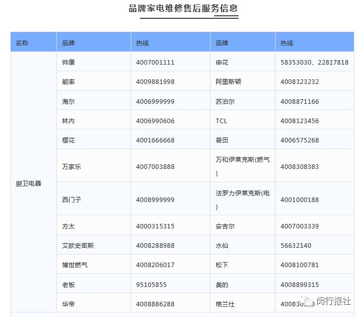 市商务委日前也公布2019年申城品牌家电维修售后服务热线电话。有需要的话可以收藏起来!
