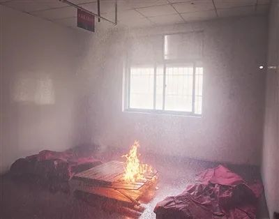 令人惊讶的是,该青年看见喷水后竟立刻将衣服挂在屋内另一消防喷头上,致使屋内第二个消防喷头也开始喷水。