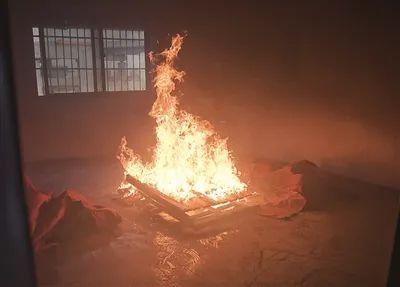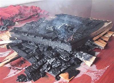 烧毁最为严重的是未安装喷淋的房间,灭火后,现场所有的可燃物几乎被烧光,只留下了一堆黑炭。