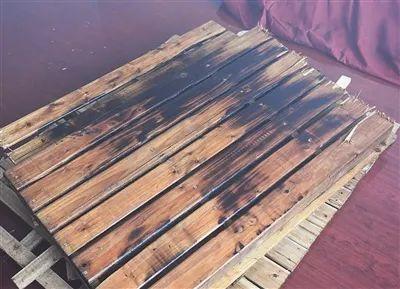 待烟气散尽,实验员先后进入4个房间观察发现,根据各喷淋爆裂的先后顺序,可燃物木板的碳化程度明显不同: