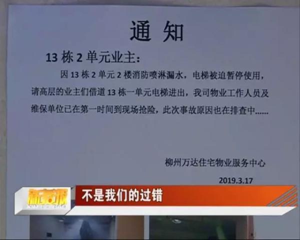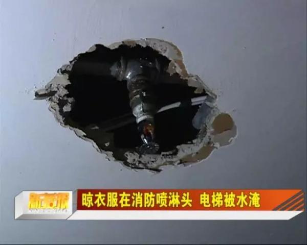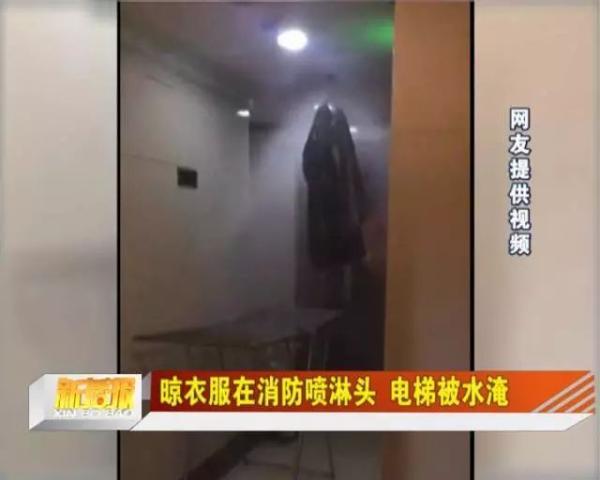 2019年3月,广西自治区柳州市万达华城一楼里的电梯因进水停运,经调查停运原因系有业主在消防喷淋头上挂衣服导致漏水。