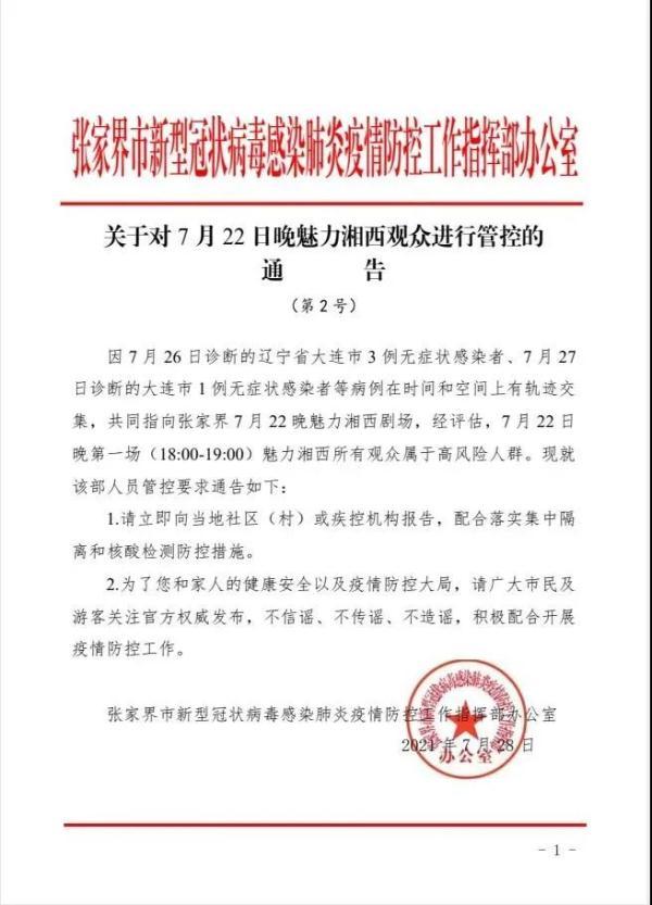 经梳理发现,7月26日大连排查出的3名本土无症状感染者,曾于7月22日在张家界观看魅力湘西剧场演出。