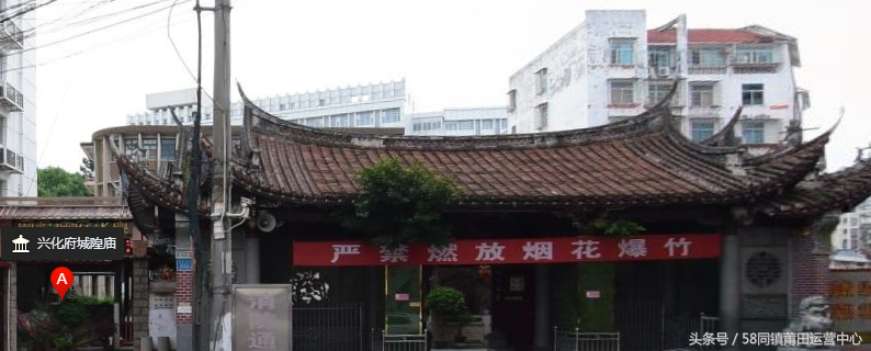 兴化府城隍庙 位于荔城区镇海街道办事处梅峰居委会庙前路,明洪武三年(1370),兴化知府盖天麟迁建原子城内西北角的军城隍庙于此,宣德五年(1430)、弘治二年(1489)、嘉靖三十八年(1559)和万历三十四年(1606)、崇祯四年(1631)、清康熙三十年(1691)、光绪年间(1875~1908),庙先后由地方府、县官员维修、扩建。仍然保持明代风格。坐北向南,占地面积约1000多平方米,由照墙、外埕、内埕、大门、甬道、仪门、月台、戏台、中门、风火门、镇壶楼、正殿、两庑、寝殿组成。正殿面阔五间,进深二间,抬梁穿斗木构架,重檐歇山顶。该城隍庙是研究明代建筑结构和城隍文化的实物资料。兴化府城隍庙2001年公布为福建省文物保护单位。