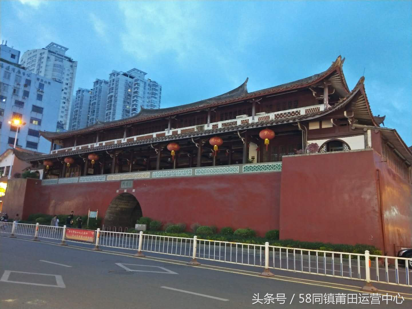 古谯楼 位于荔城区镇海街道办事处文献居委会步行街中间。宋太平兴国八年(983)创建,原为子城城门楼,宋绍兴六年(1136)焚于火,知军刘登重建。明嘉靖年间(1522~1566)焚于倭乱,隆庆五年(1571)武师卿重建,并匾“壶兰雄镇”。清康熙九年(1670)知府慕大颜重修,三十一年(1692)焚于火。康熙三十六年(1697)知府卞永嘉重建,并楼门洞上画坎卦之象以制火。嘉庆年间(1796~1820)知府马夔陛重修并书门额。