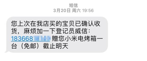 3月20日,张女士收到一条陌生短信,称添加微信后可以免费领取一箱纸巾。