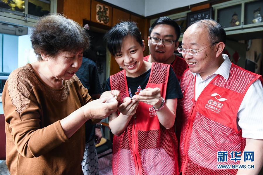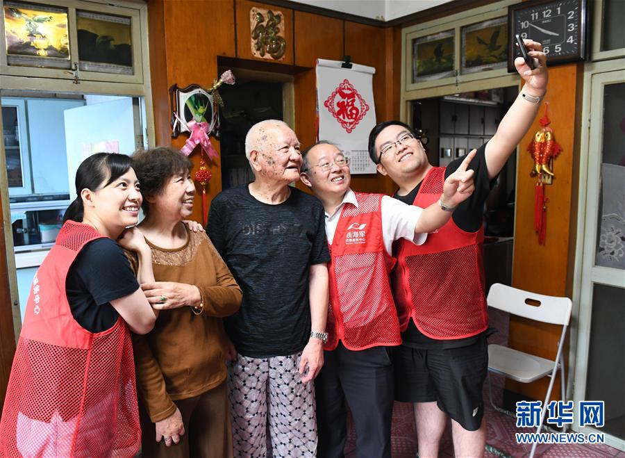 9月3日,志愿者们跟84岁的退休教师方文(左二)夫妻一起合影留念。 临近教师节,浙江省慈溪市钱海军志愿服务中心的党员志愿者向当地多名劳模老教师送去教师节的慰问,并聆听了老教师们当年任教时师生间的感人故事。 新华社记者 徐昱 摄