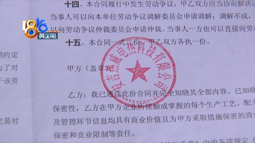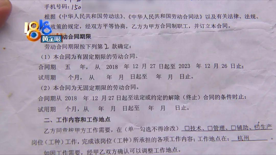 杭州热威机电有限公司综合管理部 胡主任:“(记者:2014年到2018年之间的劳动合同有吗?)劳动合同都给到他本人的,每人一份的。(许师傅:我没拿到。)那他弄丢了,就是他自己的事情。”