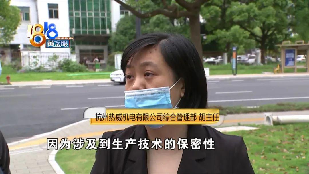 杭州热威机电有限公司综合管理部 胡主任:“(我如果按照你们的要求,登记了我的身份证号码、手机号码,我是不是就可以进去了?)对,是的。(那么我登记完了之后,我能不能去拍一下你们的生产车间?)生产车间是不能的。 (因为他说有粉尘或者什么,我们要实地看一下。)生产车间的话,包括客人进来,我们也是不给拍照的,因为涉及到生产技术的保密性 。”
