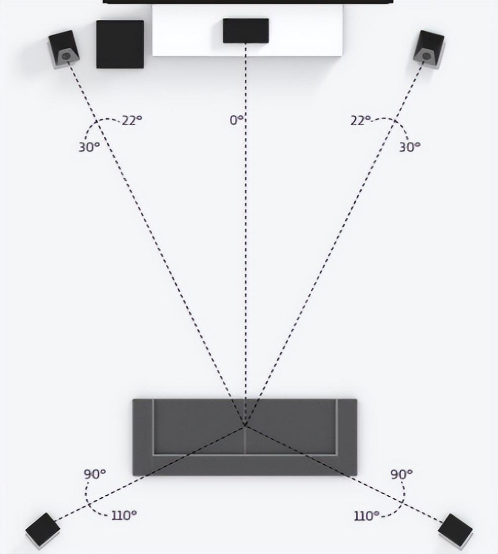 首先说四个环绕音箱,其中两个前置音箱摆放位置跟距离密切相关,包括左右音箱之间的距离,与墙面之间的距离,以及人与音箱之间的距离。