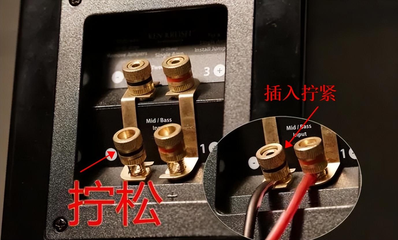 音箱线连接音箱一般是采用压线或者夹线的方式,分清线材的正负两极,把线卡紧;低音炮常用莲花头的信号线直接连到功放上。注意,如果是预埋音箱线,则需要提前确定音箱摆放位置。