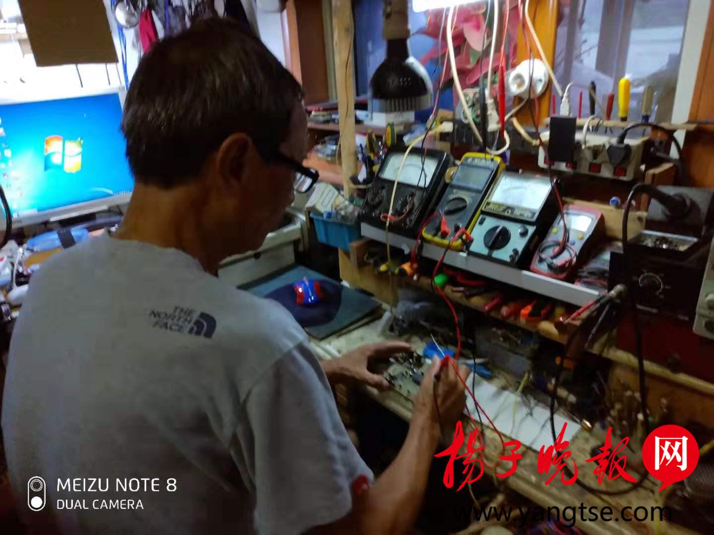 “我正在电脑上帮居民寻找配件,听到有人叫我,探出头去,发现老李,立马跑下楼去把他接到家里。”说起那一幕,夏根法满脸笑容。夏根法把每台都拆开,用万用表检查线路,最终确定是电阻电容方面的几个元件坏了,老夏从自己的“百宝箱”里找出来能用的,重新换好。