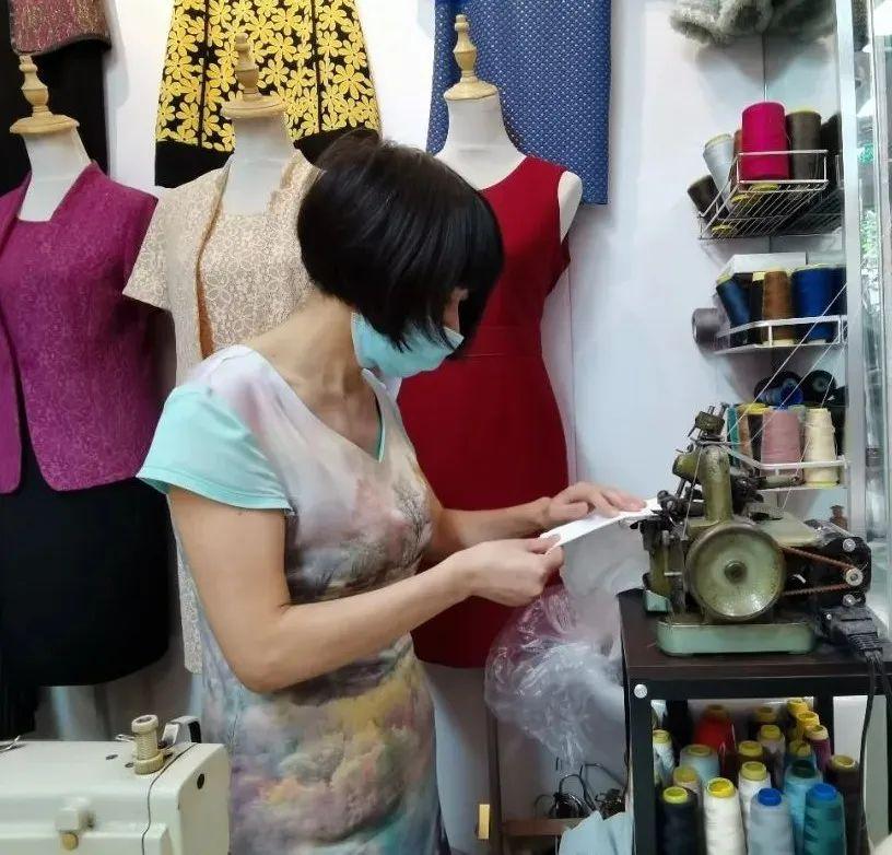 在另一家樊记成衣店,樊阿姨正踩着缝纫机,修改一条短裙。插针、穿线、踩脚踏板、缓缓挪动手中的衣物……不一会儿就能缝出整齐的一排线条,将短裙修改得“天衣无缝”。