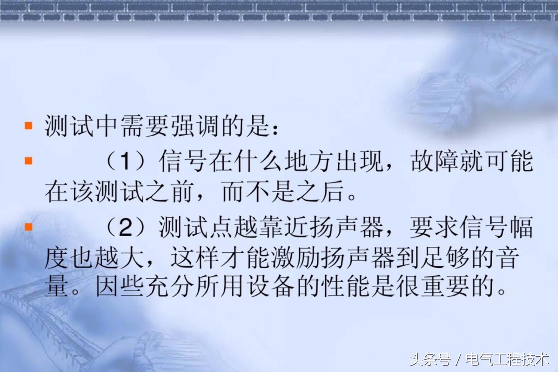 (2)测试点越靠近扬声器,要求信号幅度也越大,这样才能激励扬声器到足够的音量。因些充分所用设备的性能是很重要的。