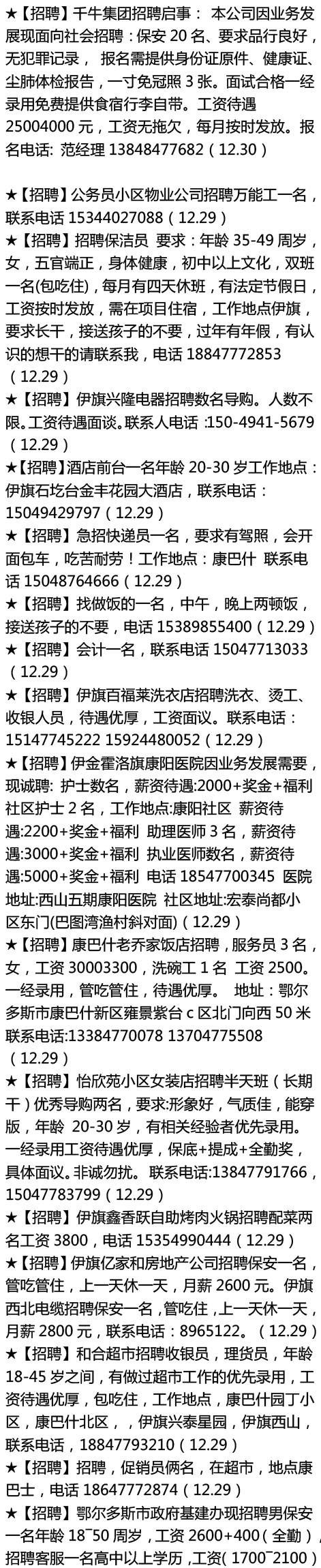 ★【招聘】康巴什博物馆招聘秩序维护员数名,能吃苦耐劳有责任心,月休4天,工资面议,有意者可联系高先生15149864611(1.3)