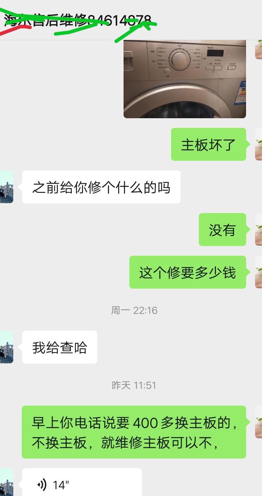 旧房出租给2个美女住快半年了,春节放假回家都还没回美女就电话说洗衣机不能用,冷天厚衣服手洗太难,一直催我找人去修,就网上查了附近维修家电的请帮忙看,说了插电显示屏闪一闪的,他就说可能是主板坏了,价格要800元,当时没敢答应,想到还没过完元宵节,估计他们搞维修的也要收“春运费”,6年的海尔滚筒洗衣机二手都才300左右,囊中羞涩啊,800元果断放弃。等过完元宵节回来亲自上门通电看了看,门外汉就发现屏幕闪,再用40多年的嗅觉到处探了一下,“没毛病”,又问她们是怎么坏的,她就说洗着突然停了,我突然对视美女3秒,她脸红了我笑了,说:我也不知道哪里坏。望闻问切都用了,还是得找厂家专业人帮忙,400800……全部服务电话打过去,服务很好说马上安排贵阳售后维修过来,此时我还是担心再来个800我承受不起啊,,10分钟左右维修帅哥电话来了,沟通后他也不说大概多少钱,就说要来检查在说,想到售后维修价格比其他的都贵,没敢马上要他来,就支付宝上又找了一家全国服务的家电维修店,那修理工速度就像等情人约会一样的着急,骑着小毛驴30分钟就来了,拆机一看就说主板烧了,准备谈判[呲牙]又怕800(没钱人的心态[抠鼻]),他打通电话跑楼下说了一会进来就说修好600元,我心里价格就300以下,就当买一台二手机。咔嚓,发了一支烟,热茶奉上说,兄弟300以下能干么。这是公司规定有材料费上门服务费价格少不了多少,最多给我少点服务费50元,他说的。没法,“谈判”失败,他说很忙还有几家要去维修给他30元路费就走了。想到网上联系不行又找附近搞维修的,春节过了价格应该回归正常,又找了邻居要了2家附近维修工电话,加微信发照片说主板坏,他们开始不报价格,先问 找其他人修过没 别人报多少钱 机子用几年了,最后下来都没一个低于400的维修。没法,我上网找了洗衣机维修视频拆机视频一看,病因明确,换配件很简单,马上就看型号买主板,80元买来带上工具就干。30分钟全部搞好。租房美女问我是做什么工作的,我说我是执业药师,看病配药10多年了,现在做厂家代理。她还不相信→_→。现在药品销售也不好做啊,天天为收欠款发愁,看他们这样搞家电维修投资小还利润老高了,一天能有5家客户都收现款,那日子过得滋润啊,没应酬还不用担心库存什么的,轻松多了。你们说,可以改行不一边搞维修顺便给客户看看病开开药[酷拽]
