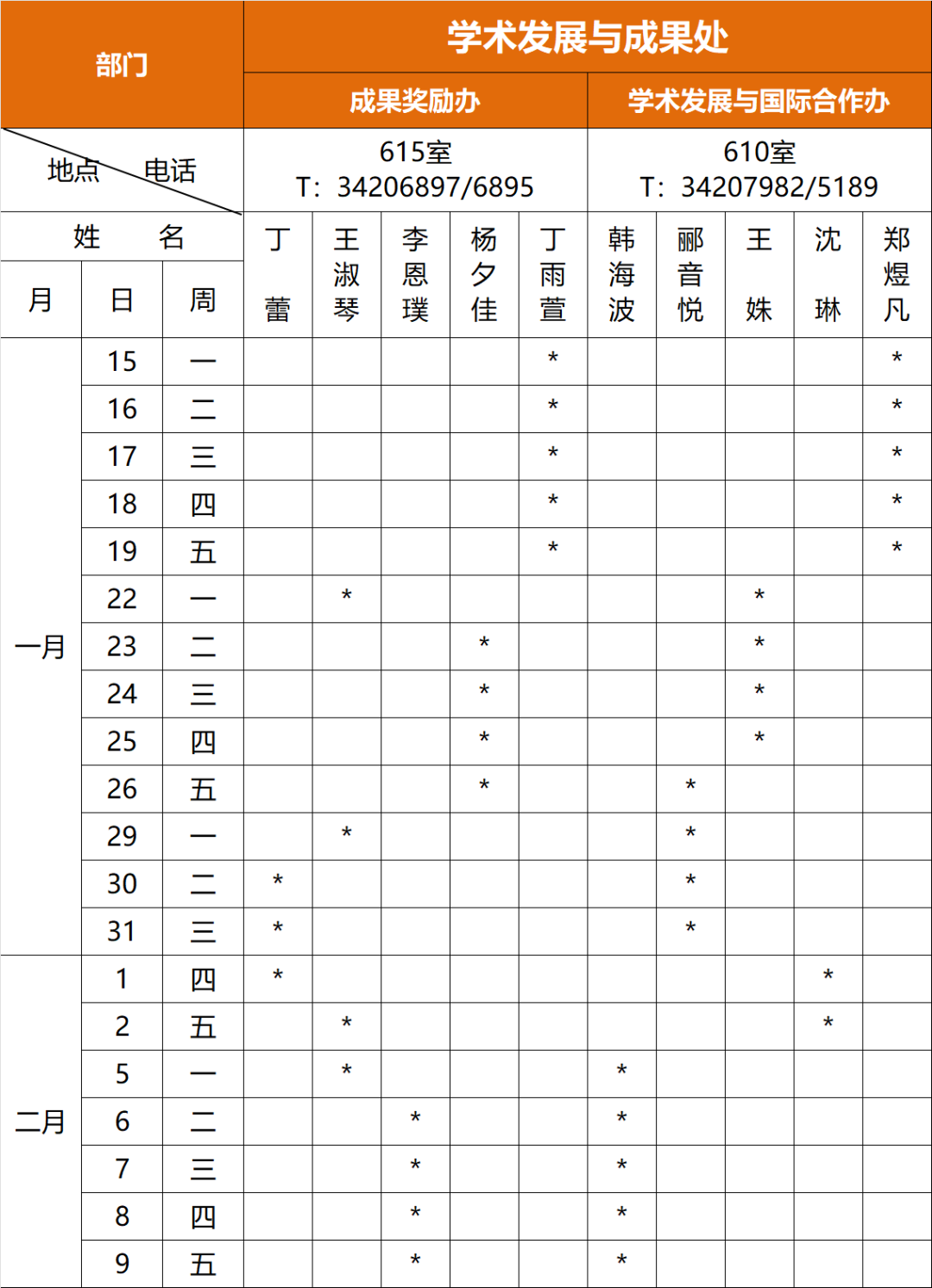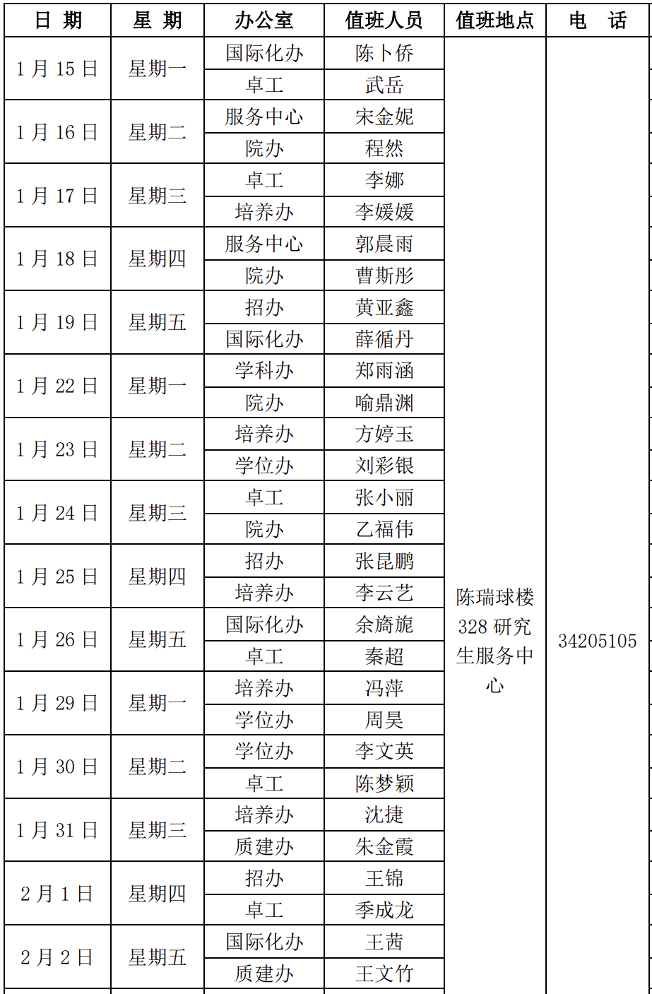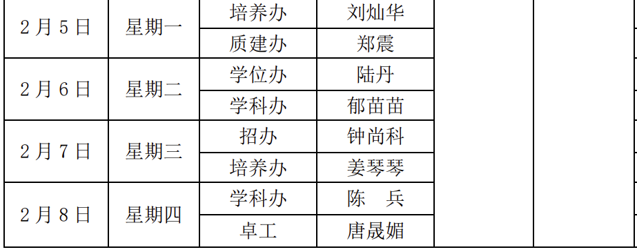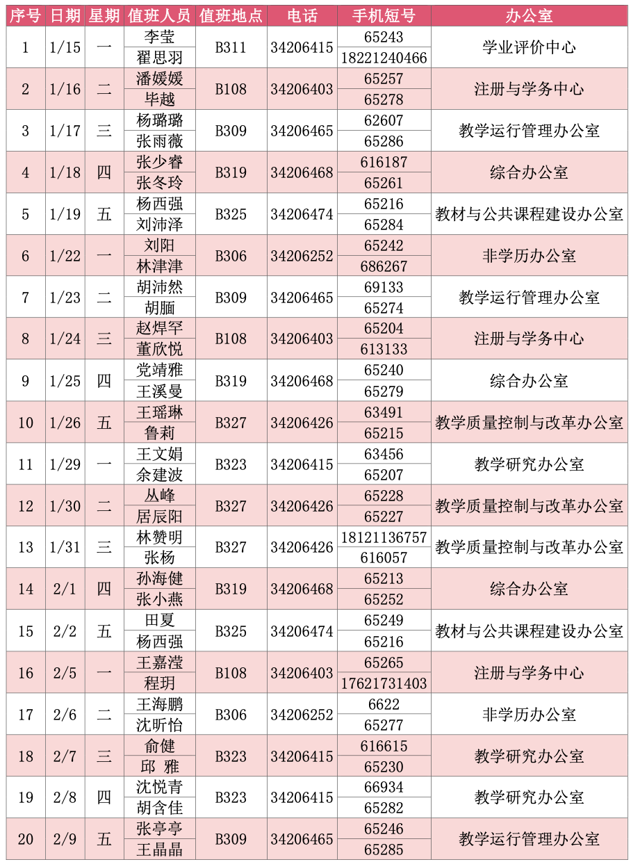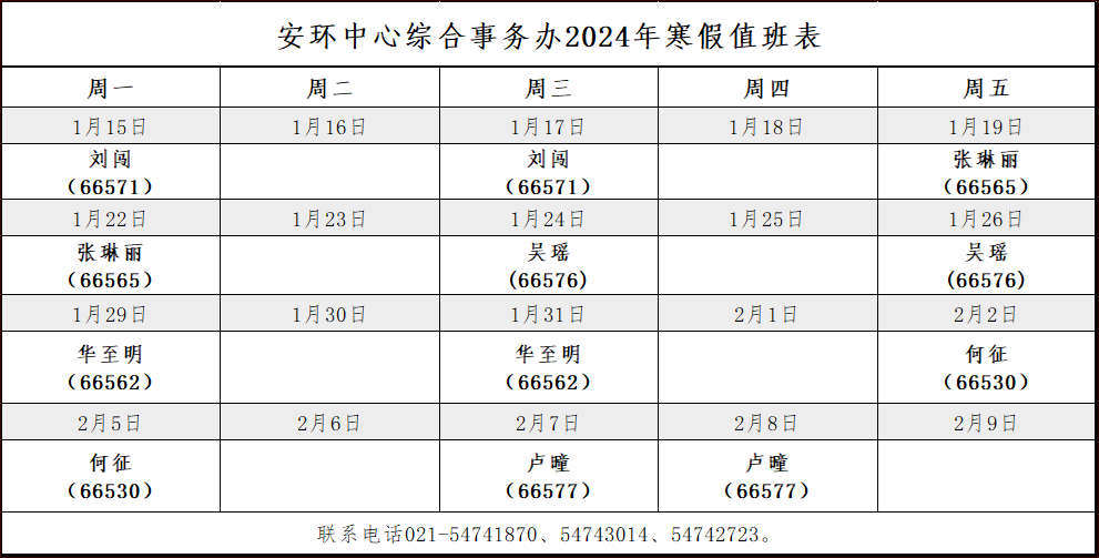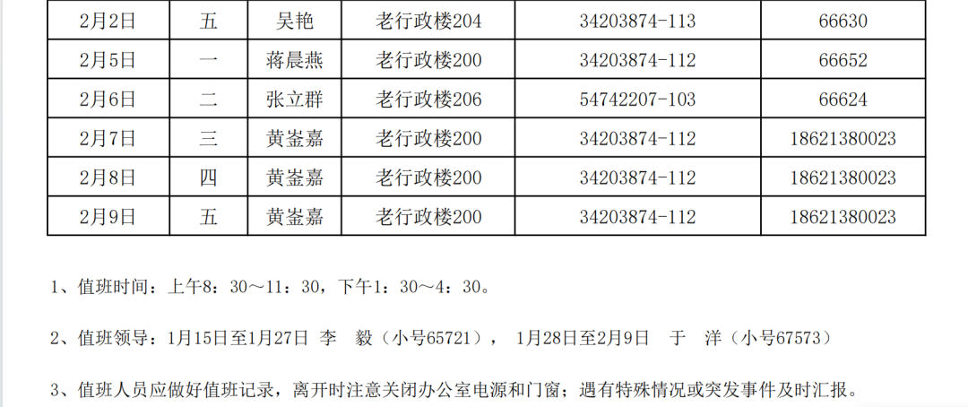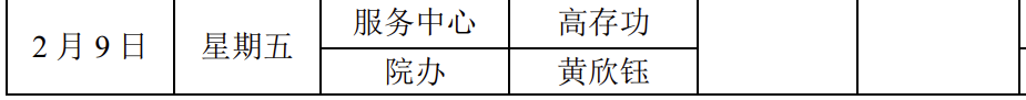 科学技术发展研究院各办公室将于1月15日(周一)至2月9日(周五)进行轮休值班,2月18日(周日)正式上班。