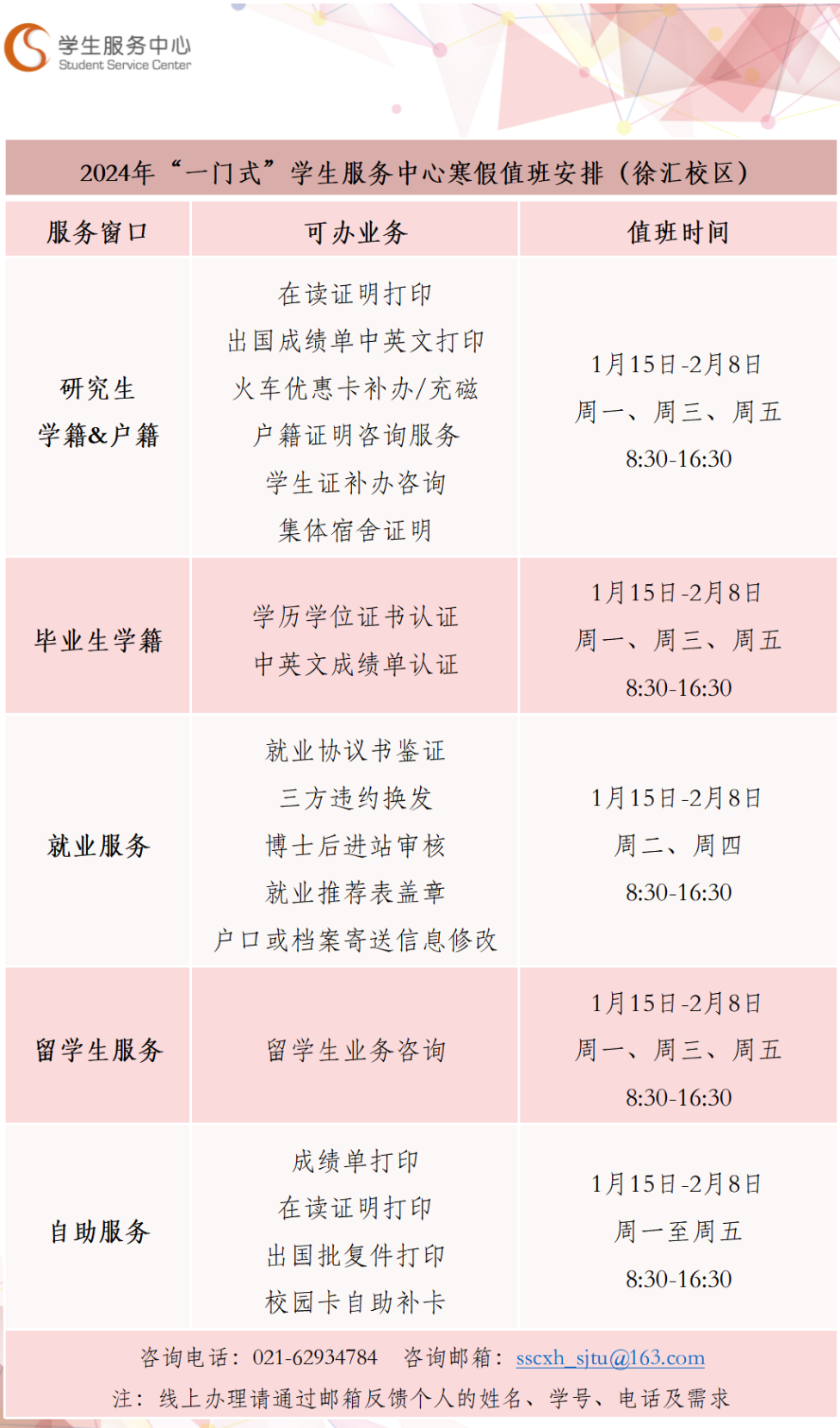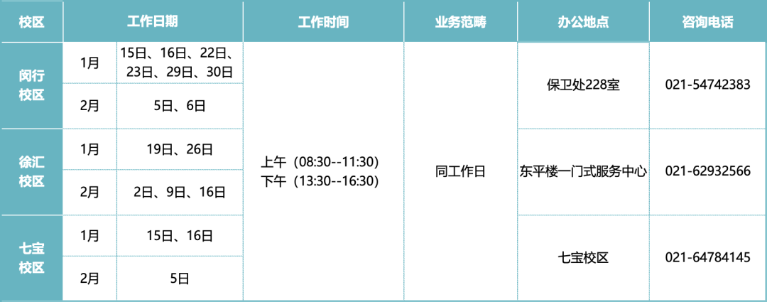 办理地点: 上海交通大学徐汇校区学生服务中心