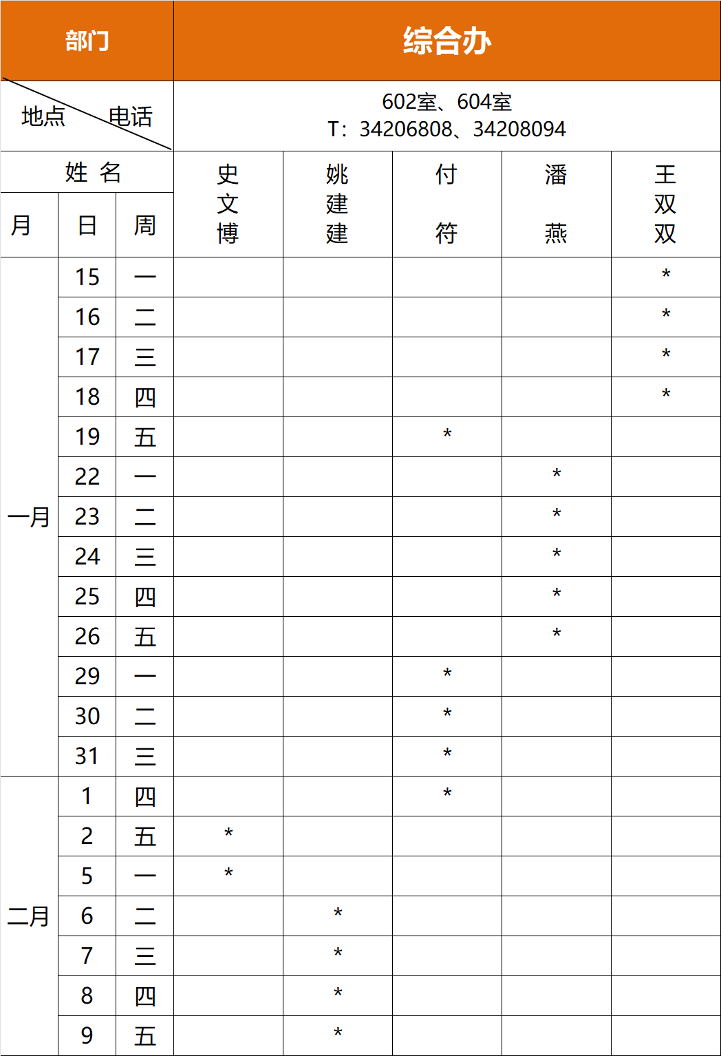 值班时间: