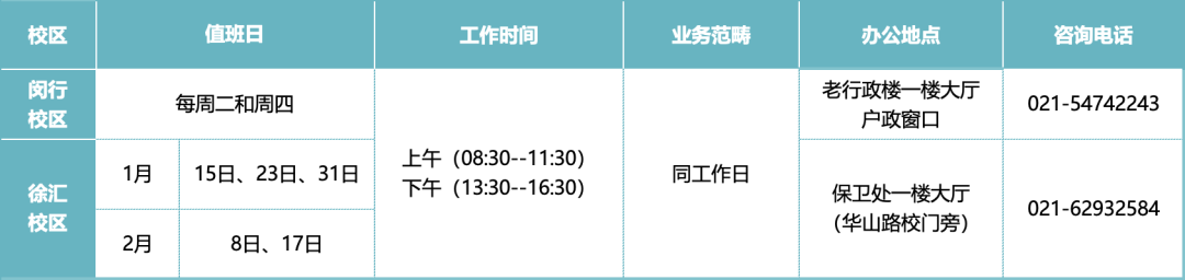徐汇校区会计核算中心每周一、三、五对外办公。
