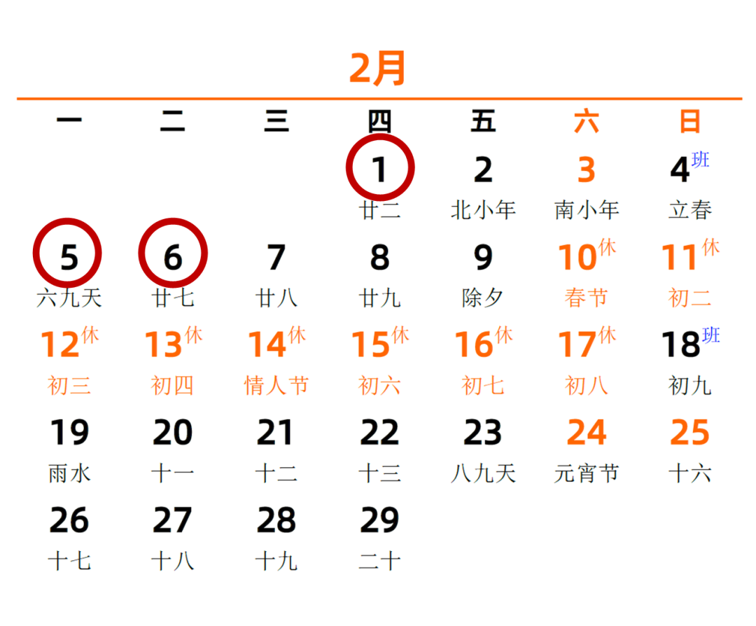 2月14日-2月18日(春节后)