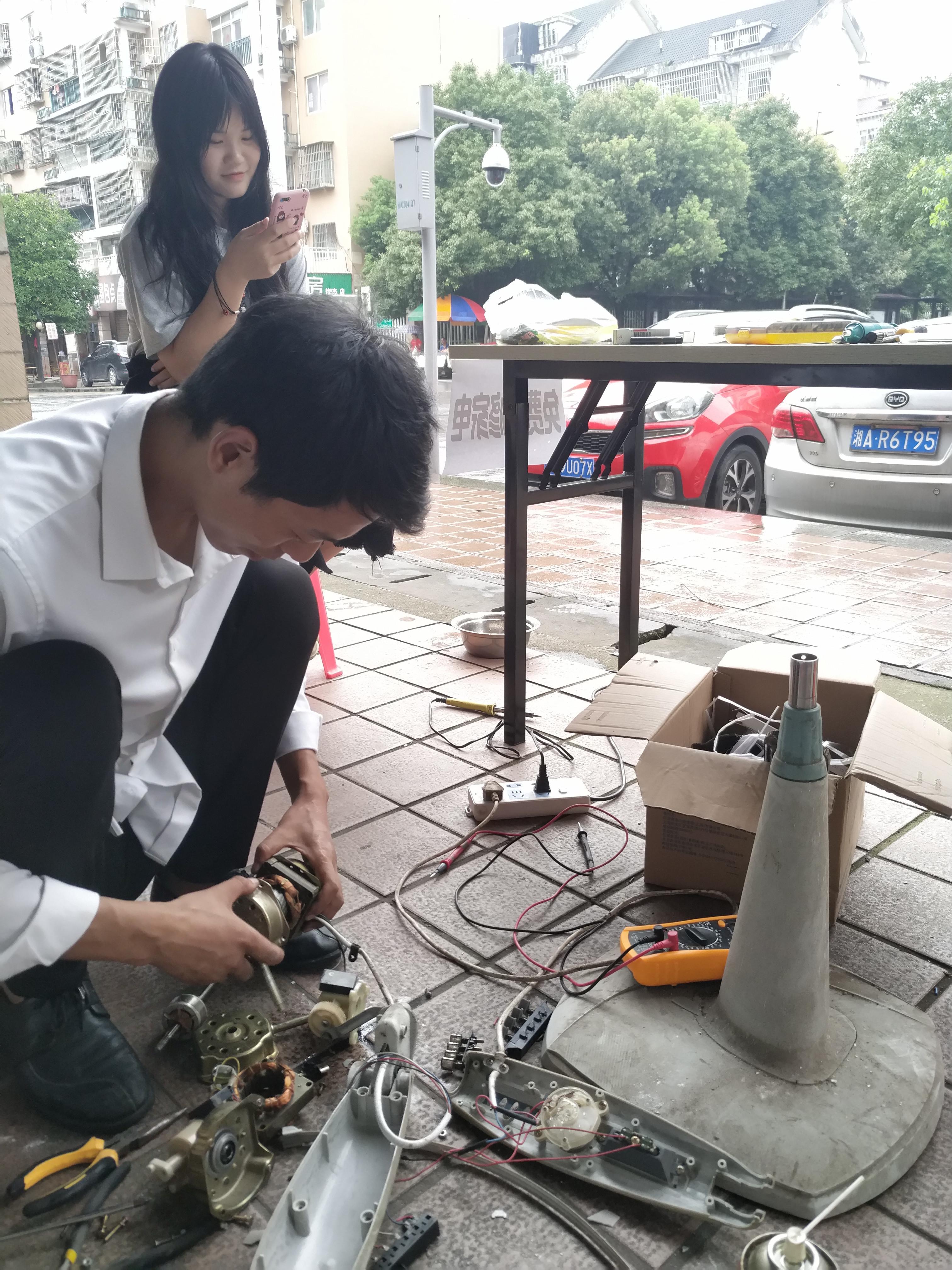 陕西小伙长沙小区门口学雷锋:自掏腰包免费维修家电