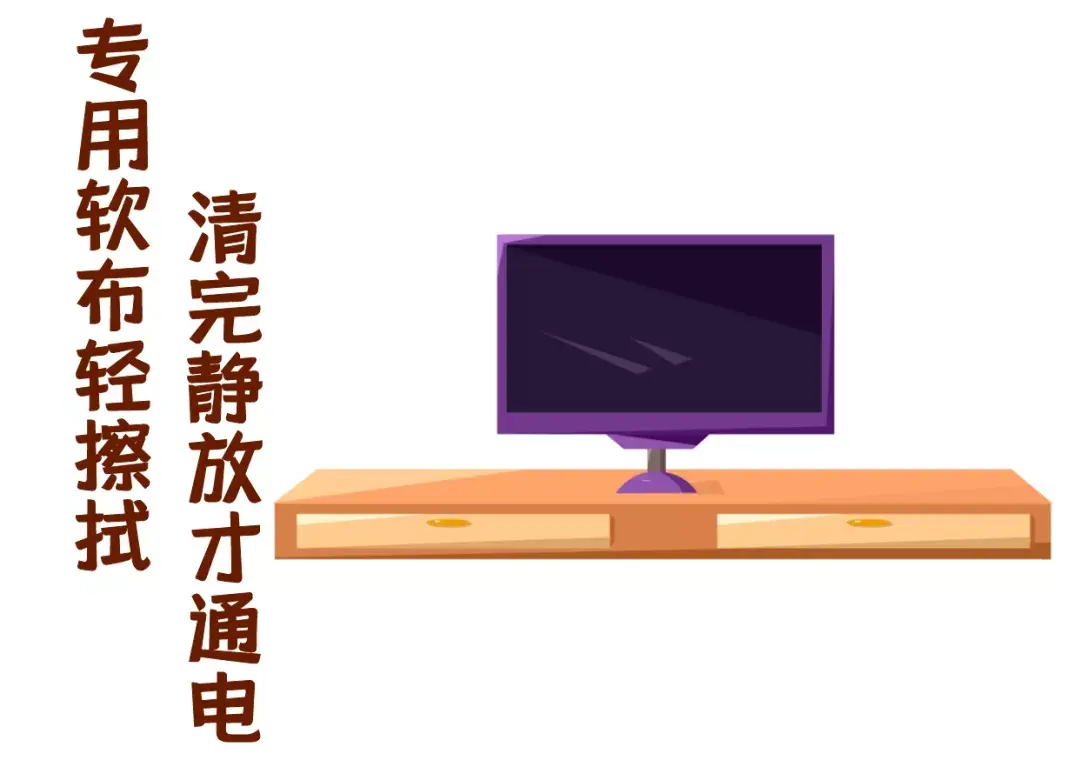 用专用的平板电视清洁布直接擦拭,或者使用专用清洁液,喷在干燥柔软的毛巾上轻轻擦拭,切勿直接喷在屏幕上。清洗完后,先静放30分钟,然后通电除去潮气。