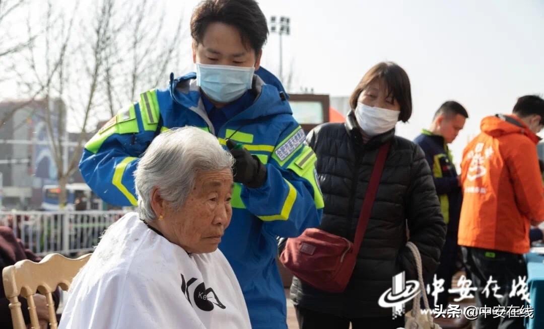 旁边的爱心理发项目点位,苏琴队长正带着明星理发师余涛、队友汤善银,为前来剪发的老人和孩子勾勒着靓丽的造型。大爷大妈和孩子们一边排队等待,一边夸赞着合肥市蓝天救援队无私奉献的大爱精神。不知是哪位小朋友在人群中喊了一句:“他就是去郑州救灾的Tony叔叔!”人们无不投来敬佩的目光,纷纷为他鼓掌。