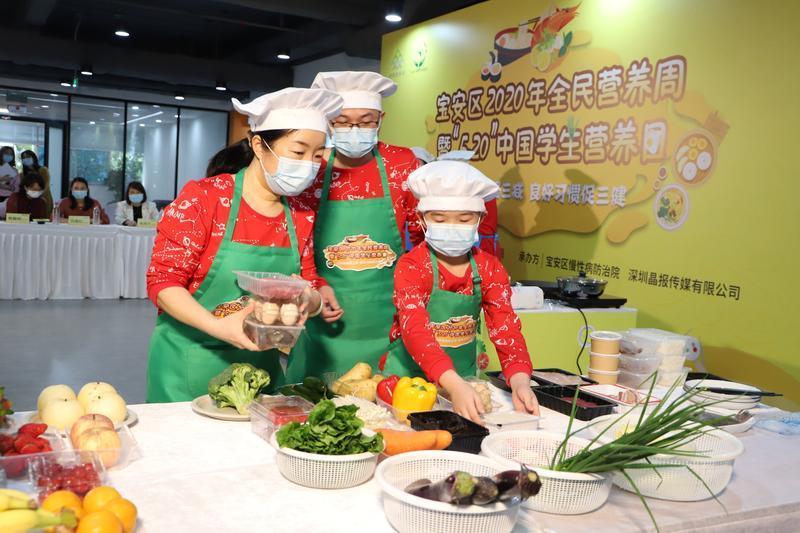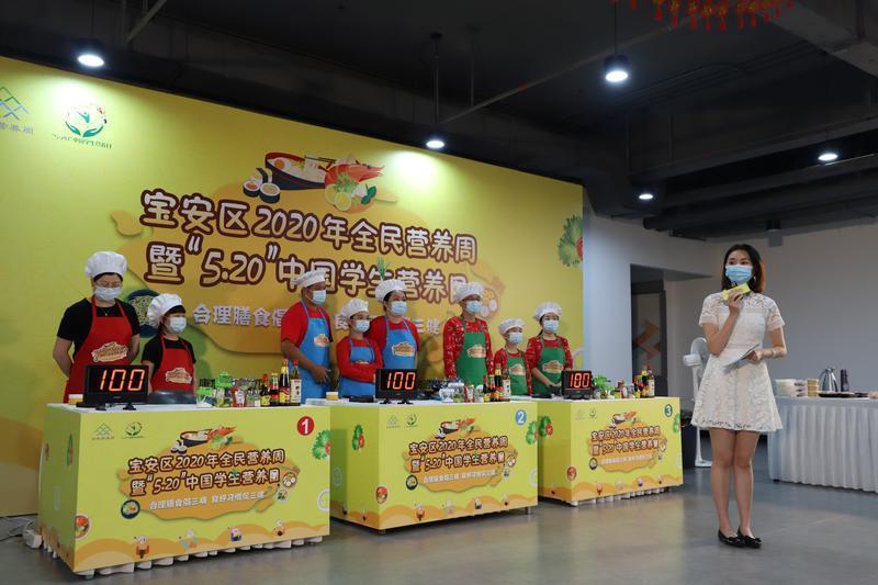 这是由宝安区教育局、宝安区慢性病防治院主办,深圳晶报传媒有限公司承办的宝安区2020年全民营养周暨“5.20”中国学生营养日家庭营养美食秀的活动现场。