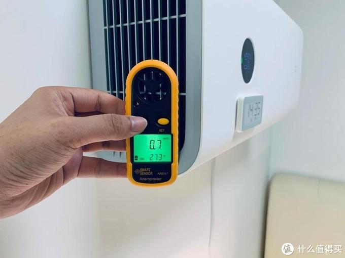 因为额定功率仅有20W,所以风量和噪音自然也不是很大,这里楼主用热敏式风量仪测得的风量为0.7m/s。