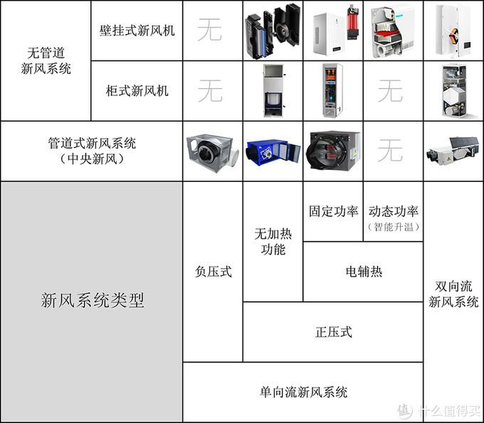 市面上常见的新风机类型,通常按照安装方式可以分为管道式新风机和壁挂式新风机。另外,按照通风原理又可以分为单向流和双向流。这里有个表格大家可以参考下: