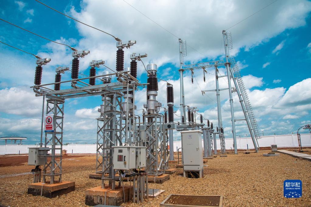 这是6月2日在中非共和国首都班吉附近的宾博市拍摄的萨卡伊光伏电站的升压站。新华社记者罗毓摄