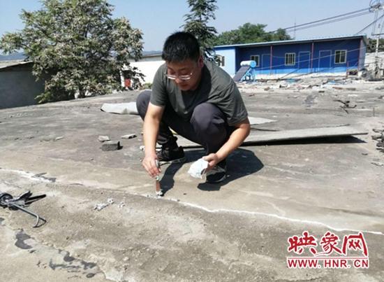 师占老人是南顾庄社区建档立卡贫困户,是一名特困供养老人,今年77岁的他肢体3级残疾,长期独自一人居住。今年雨水比往年都多,驻村工作队始终牵挂着贫困户住房安全情况,在排查过程中,驻村第一书记张磊发现,贫困户师占、郭留占2家中的房子存在着房顶滴水的现象,家中是外面下大雨,屋中下小雨,如果不及时维修,房顶长期潮湿,极有可能发生变形,影响住房安全。随即驻村工作队冒雨查看漏水点,先在屋顶渗水的地方铺了一层防水雨单,暂时止住了漏雨。雨过天晴后,工作队员王红涛、李勇刚马上购买防水胶等维修工具,重新对他们2家房顶漏雨点进行了防水处理,经过1天时间,驻村工作队先后把贫困户师占、郭留占2家漏雨严重的房屋修缮完毕。